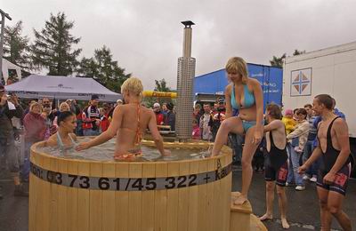 Die Presse titelt „Radsportler wühlen sich durch den Matsch“, es finden erstmals Kinderrennen statt, Thomas und Claudia sind würdige Champions. In Erinnerung bleibt der extra im Ziel aufgestellte beheizte Bade-Bottich, in dem die Sieger ein Entspannungsbad nahmen.