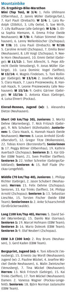 Auf den Punkt genau 1800 Teilnehmer feiern den Meilenstein! Beim Kinderrennen, waren über 300 Kinder am Start, zu Rennen am Sonntag treten 1.340 Starter an. Von Manowar kommt die neue Startmusik, es gibt die erste EBM Lumipöllö Sonderkollektion und Edel-Pullen! Die „Schnapsidee“ zum 25. einen EBM 3.0 – über 10 Runden von jetzt 30 km und über sagenhafte 300 km und 8000 Hm zu machen – wurde umgesetzt und es hat tatsächlich 10 Finisher gegeben – es war der Wahnsinn!